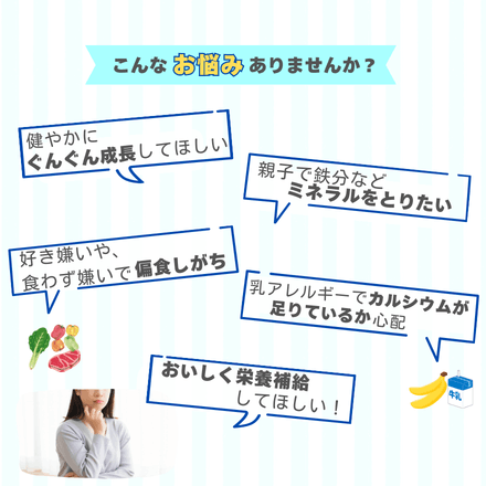 - ●お子様の手の届かないところに保管し、保護者の指導管理のもと摂取させてください。